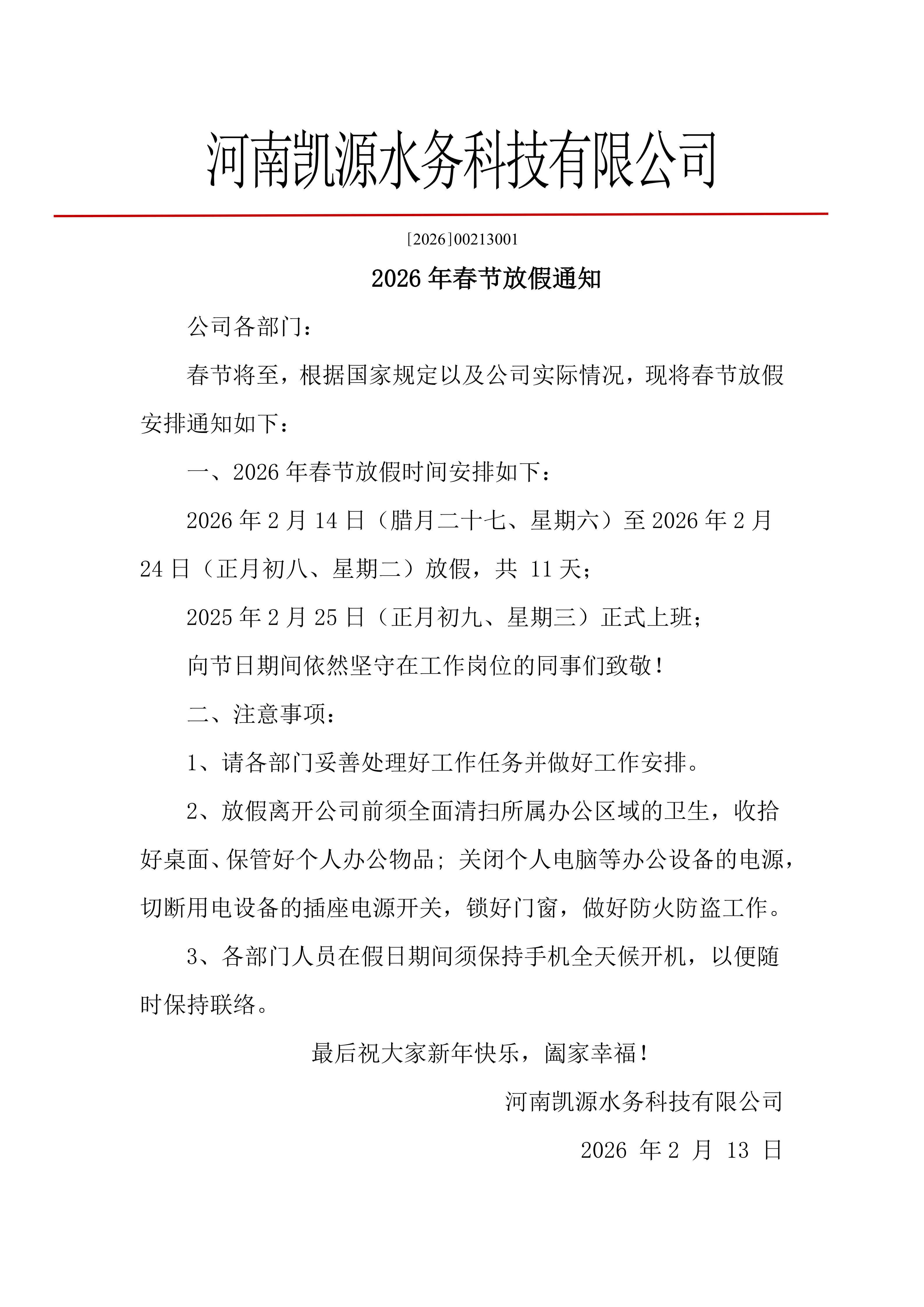 2026年春节放假通知